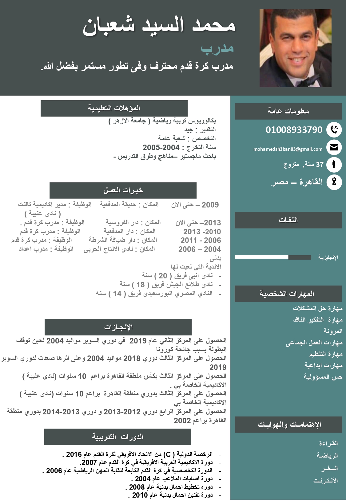 مدير اكاديمية تالنت ( نادى عنيبة )حديقة المدفعية 2009- حتى الان