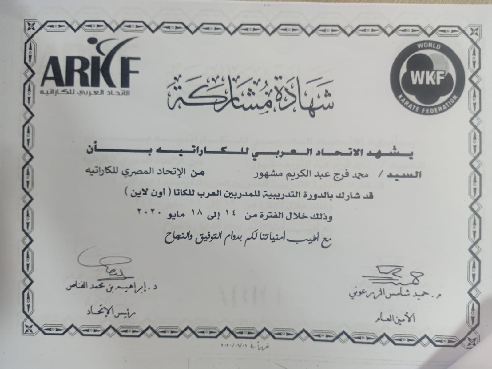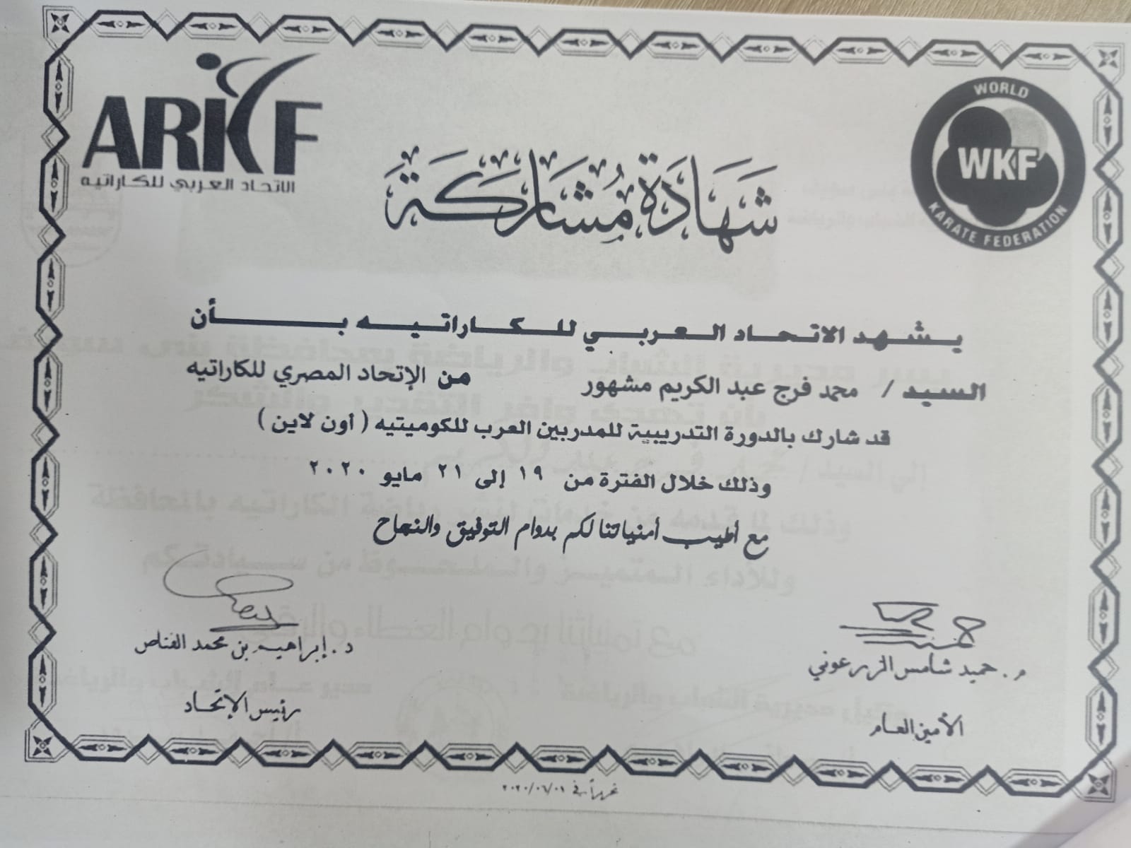 دورة من الإتحاد العربي للمدربين كاتا وكوميتة