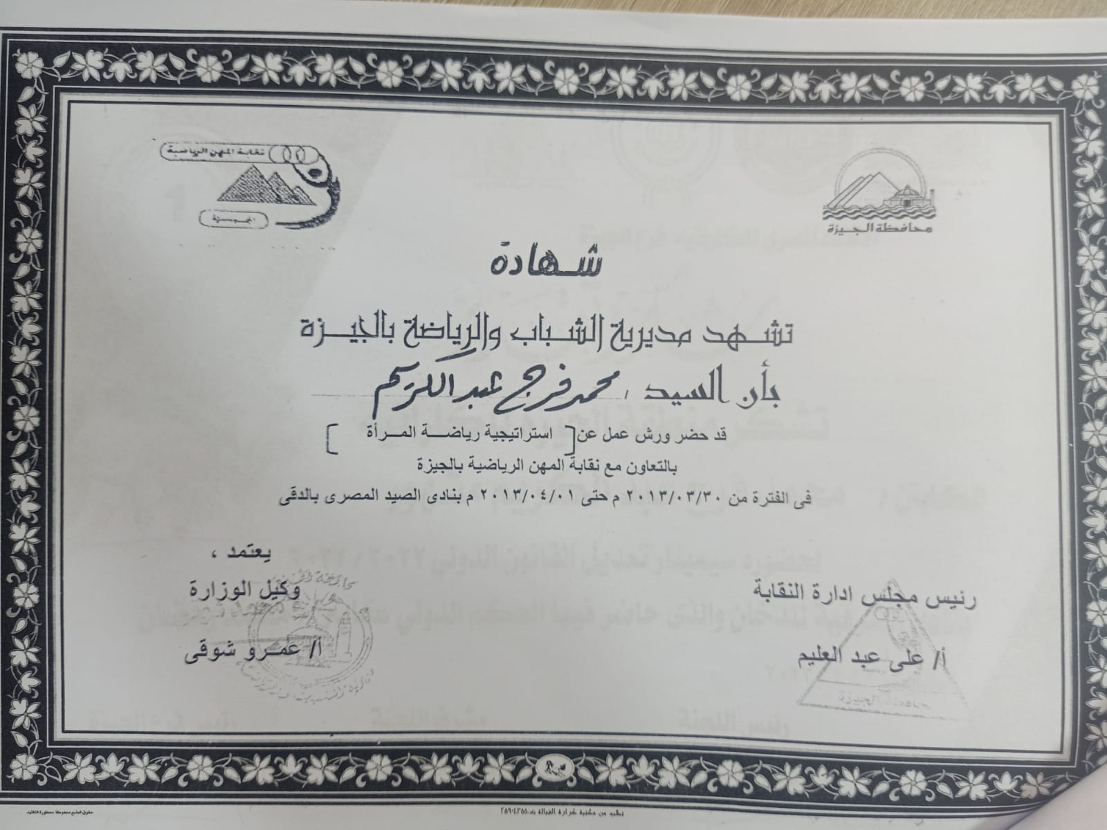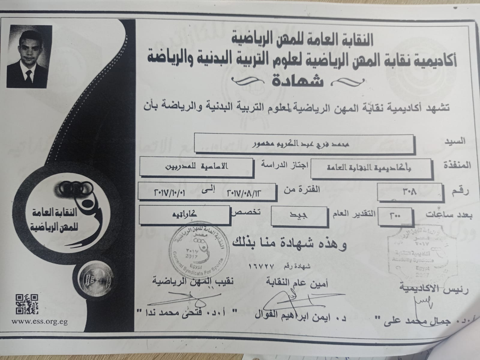 الإشراف الكامل على فرق التدريب بالنادي - تدريب اللاعبين وتحسين مستواهم الفني والبدني - تنظيم المعسكرات التدريبية والبطولات مدير فني نادي العياط